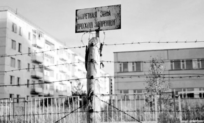 Një gardh me tela me gjemba dhe një shenjë paralajmëruese ku shkruhet: “Zonë e ndaluar. Nuk lejohet kalimi rreth qytetit të Pripyat, i cili u evakuua pas shpërthimit të reaktorit bërthamor. Të nesërmen, në orën 11:00, autobusët mbërritën në Pripyat për të larguar njerëzit. Evakuimi filloi në orën 14:00.