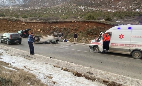 Aksident i rëndë në Rrugën e Arbrit, përplasen dy automjete, njëra prej makinave përmbyset