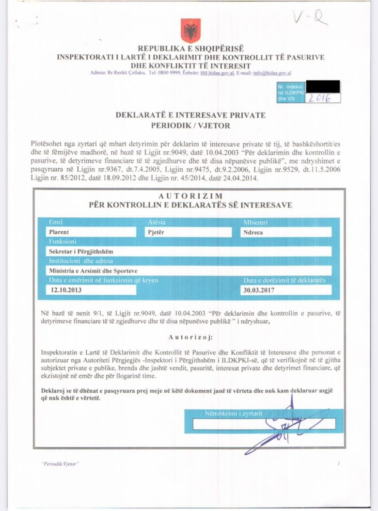 Por Grupi i Ekspertëve pranë PD ka investiguar edhe më tej. Sipas deklaratave të pasurisë të subjektit Plarent Ndreca, të cilat janë publike dhe mund ti aksesojë kushdo në faqen Open Spending Albania, në deklaratën e pasurisë të vitit 2016, Plarent Ndreca nuk deklaron aksionet e zotëruara në këtë kompani.